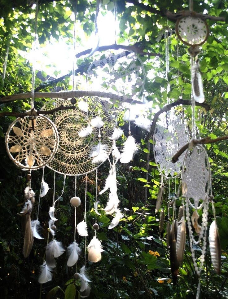 Je maakt een dromenvanger of bewerkt een boomschijf. Niet om “mooi” te maken, maar om jouw energie van die dag tastbaar te maken.