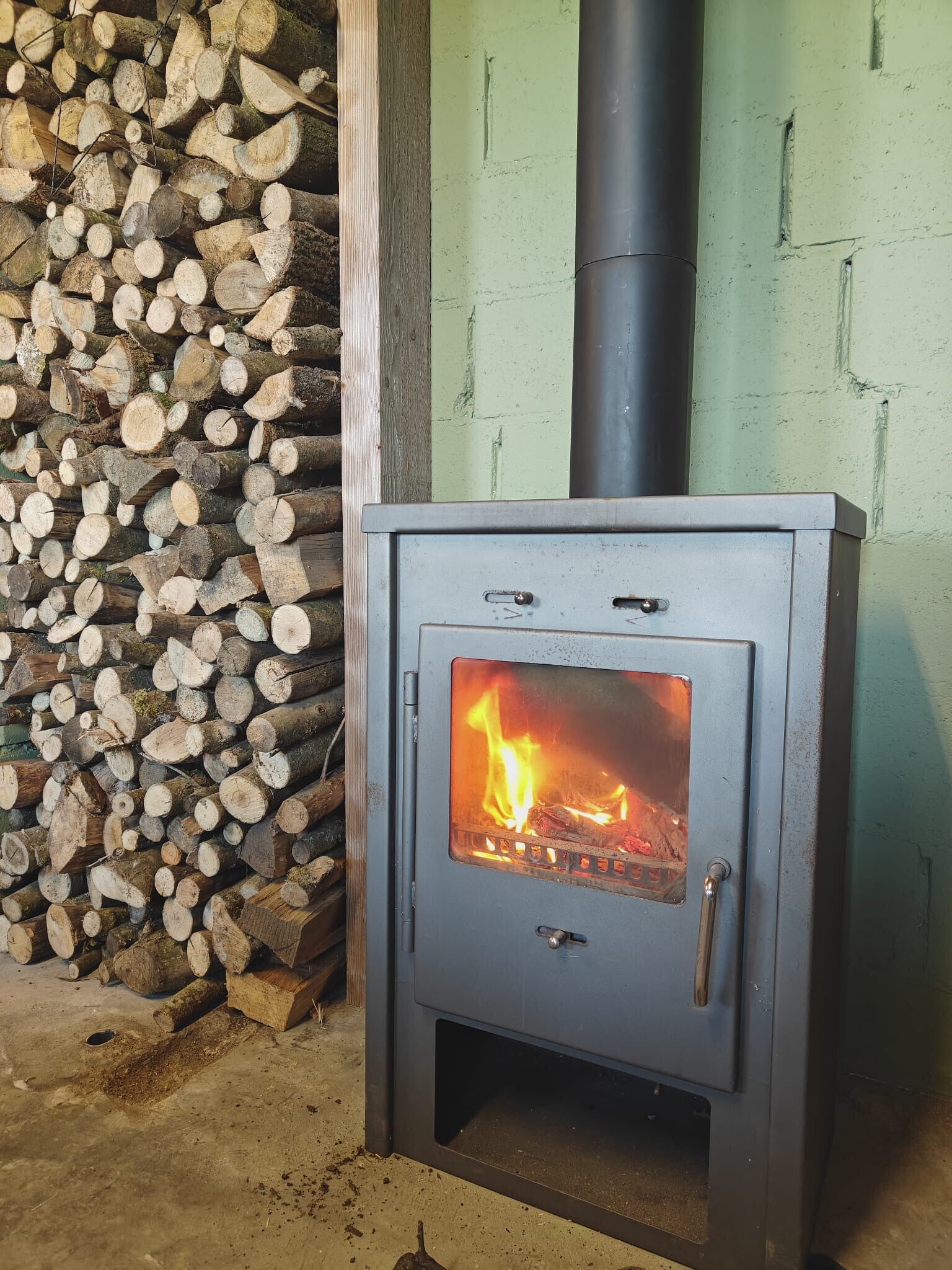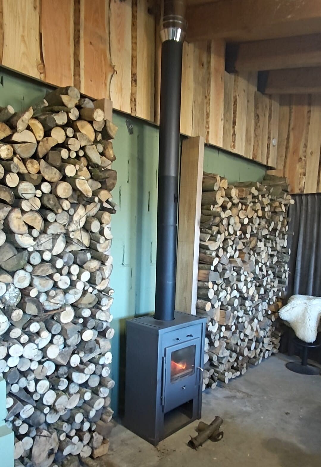 De werkplaats Keuken is warm gestookt bij jou aankomst en het hout om gedurende jou aanwezigheid te verwarmen is per mand bij de kopen voor € 7,50
